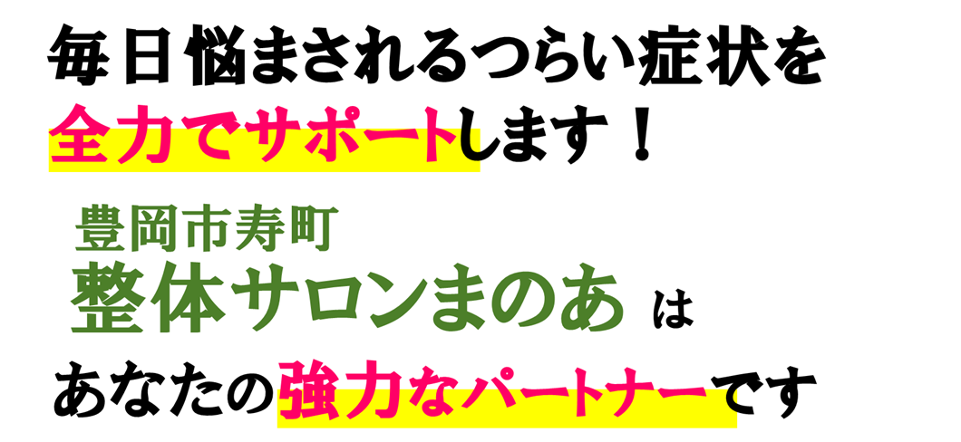 来院される方には、心身ともに穏やかにほぐれ、自分らしさを取り戻してほしいと願っています。「整体サロンまのあ」は、皆様の健康と充実した生活を、これからも末永くサポートしていくことをお約束します。
