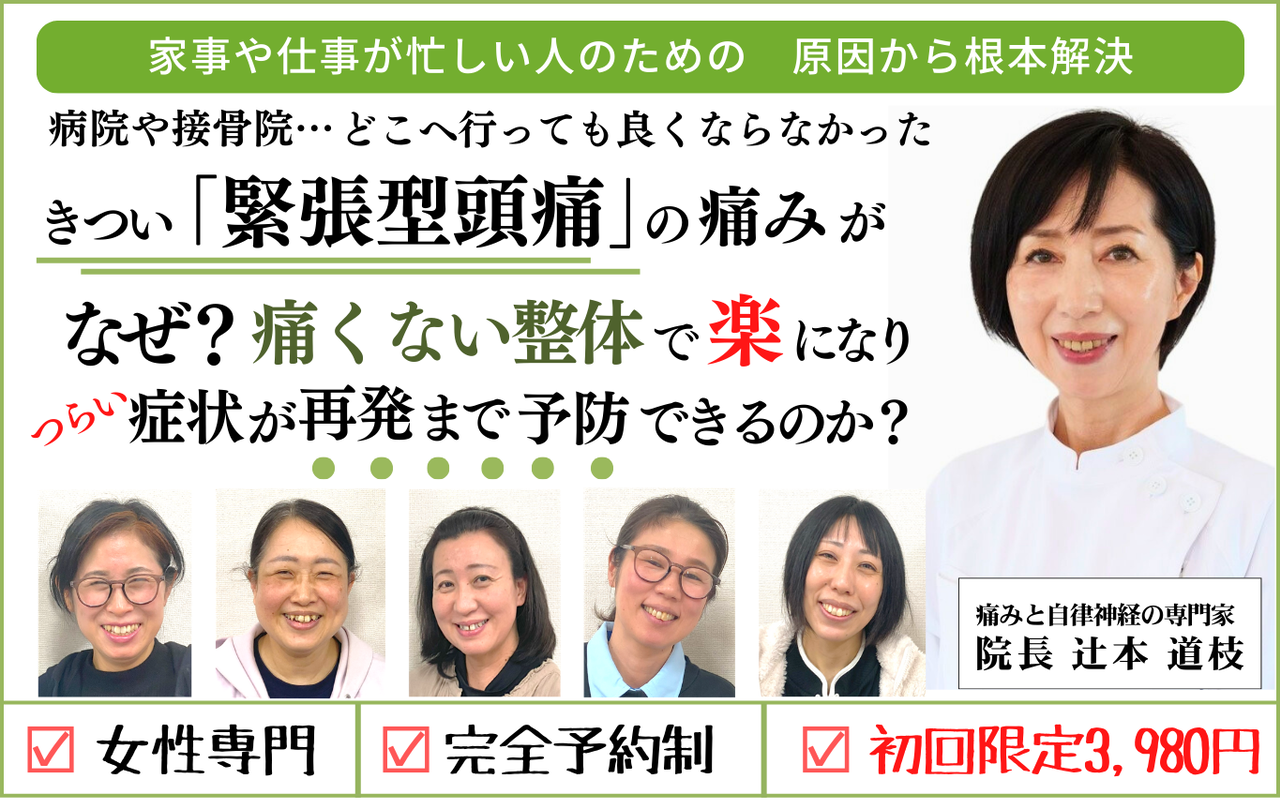 当院の、全身を整え自律神経にアプローチする無痛整体で、あなたの緊張型頭痛を改善し、痛みのない生活を取り戻していきませんか?